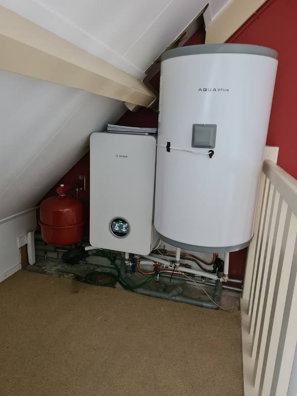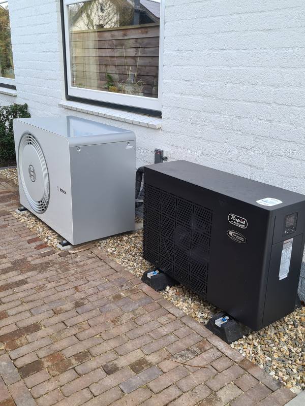 - 2x Full Electric warmtepomp Nefit Bosch Compress 5800i 5Kw en 7Kw voor de verwarming van 2 wooneenheden en voorziening van warm tapwater